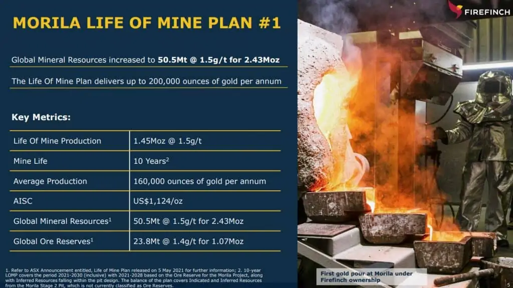 In August 2020, FFX acquired an 80% interest in the Morila gold mine from Barrick and AngloGold for AUD $38.4 Million. The gold mine as an All-In-Sustaining-Cost (ASIC) US$1,124/ OZ, given the current gold price of around US $1,800 a mine life of 10 years and average production of 160,000 ounces this project on its own is likely to be very profitable over the next few years.
