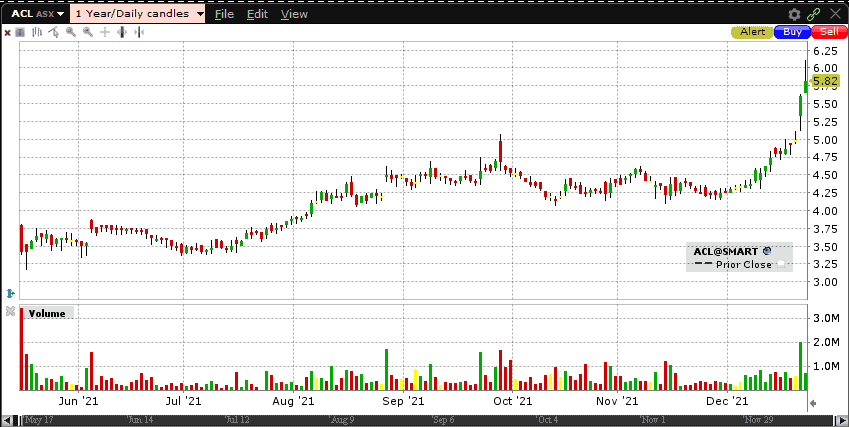 In early trading today the ACL share price reached an all-time high of $6.10.
