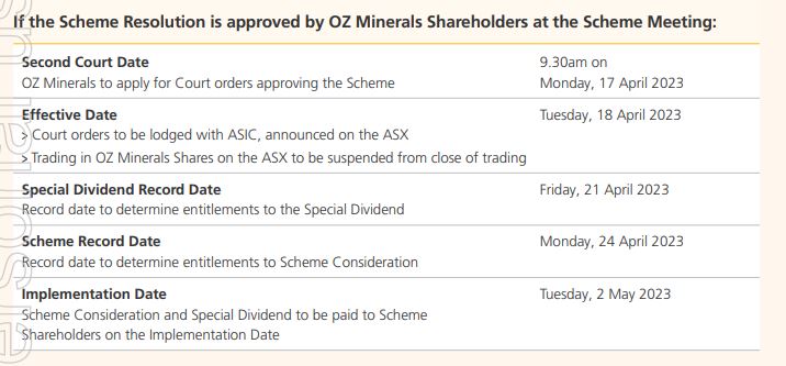 The Oz Minerals (OZL) is proceeding precisely as expected. Generally, with a takeover, there is always at least one party, be it a hedge fund, fund manager, or substantial shareholder in the media, talking up that the price being offered should be increased. But not a peep. It has all been very uneventful.
