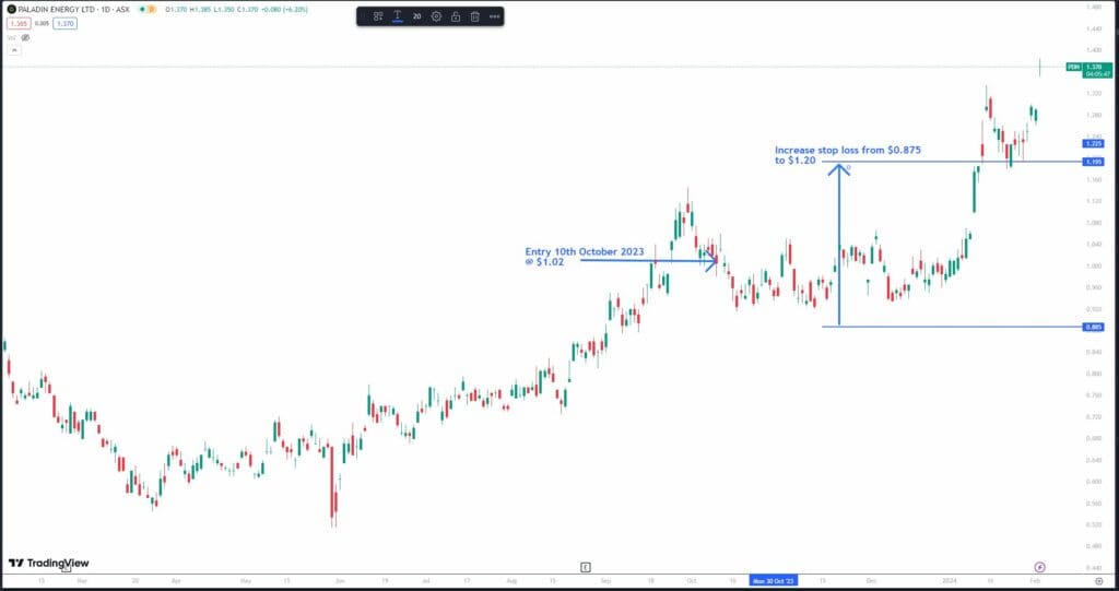 So, it is time to increase the stop loss on the position. We will still leave the position without a profit target as the share price has the potential to move sharply higher.