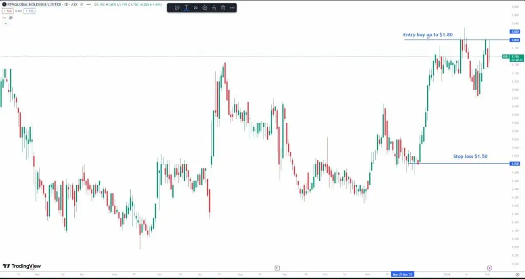 Wel’ll take a small position today as we anticipate the stock breaking out of this short-term trading range on the back of a positive earnings catalyst which is due on the 22nd February 2024.