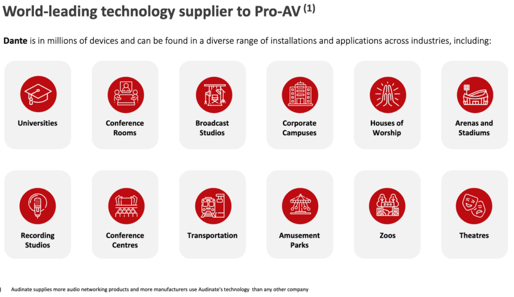 Audinate (ASX Code AD8) is a global provider of professional audio and video technology equipment. Until recently, AD8 were well known for their audio platform known as Dante. In layman’s terms, Dante replaces physical cables and connections between audio and visual equipment thereby allowing the devices to wirelessly “speak” to each other with near-zero lag and near-flawless quality. AD8 was a covid victim as live events were put on hold globally, but has seen a strong bounce back in FY23, with record revenue exceeding broker expectations in December.