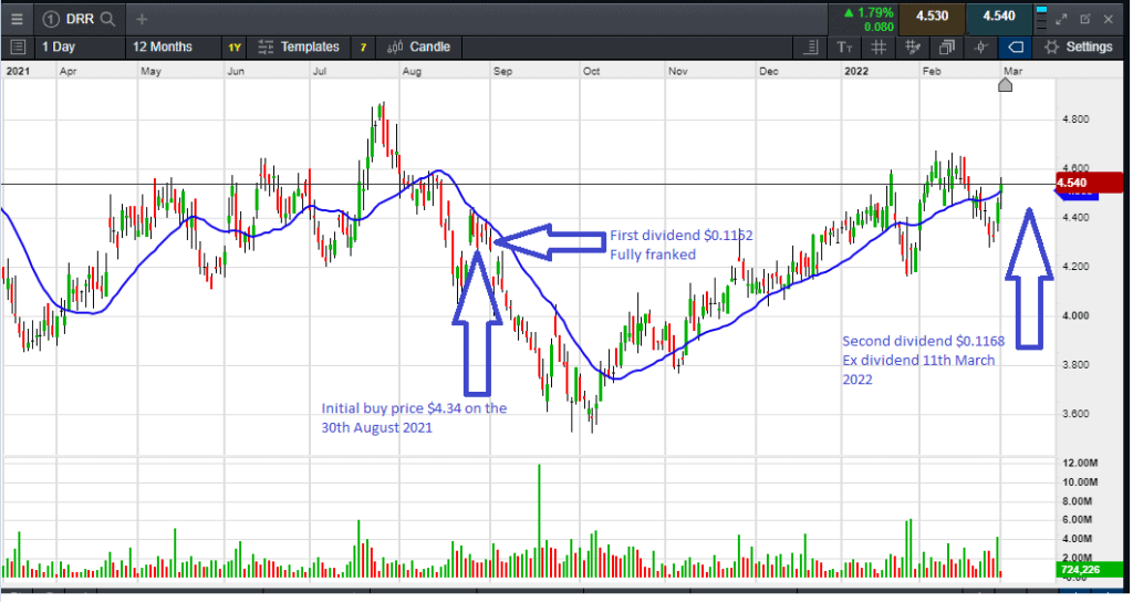 DRR achieved a slight increase in the dividend despite the sharp fall in the iron ore price from which the company generates the majority of its royalties.