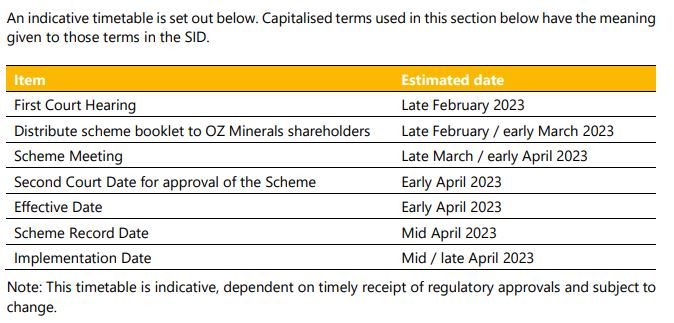 On the 22th of December, after completing the due diligence, BHP entered into a formal Scheme Implementation Deed (SID) to acquire OZL.