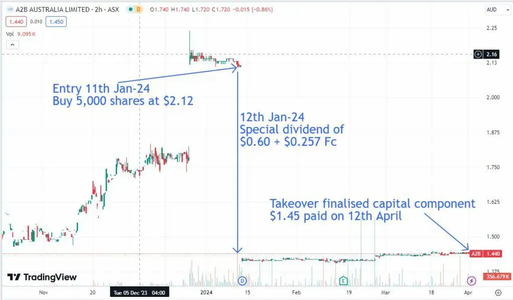 Shares in A2B were purchased at $2.12. Shareholders have received.