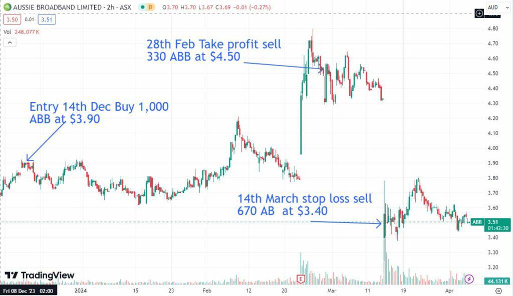 Not surprising, the share price was hammered on the open and gapped through our $4.20 stop level, opening at a price of $3.40 (our exit price).