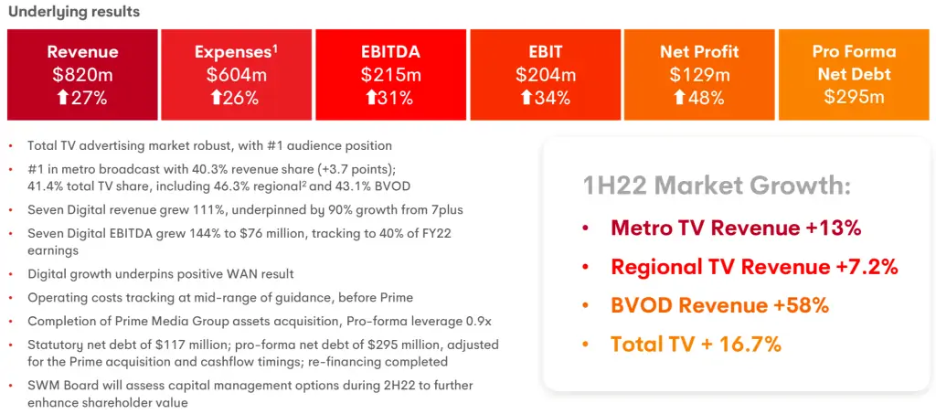 In recent news, SWM completed the acquisition of Prime Television in late 2021, extending the companies reach not just into metropolitan but rural and regional areas. The combination of SWM and Prime gives advertisers one platform to reach audiences nationwide. This is a significant advantage over the competition at channel 9.