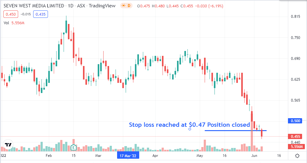 In trading yesterday, the Seven West Media (SWM) reached the stop loss level of $0.47, and the position is now closed.