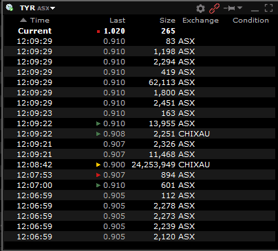 The TYR chart has a similar trajectory to many fintech companies listed on the market in that its share price has fallen drastically since its peak in November 2021, around $4.00 to close at $1.02 yesterday.